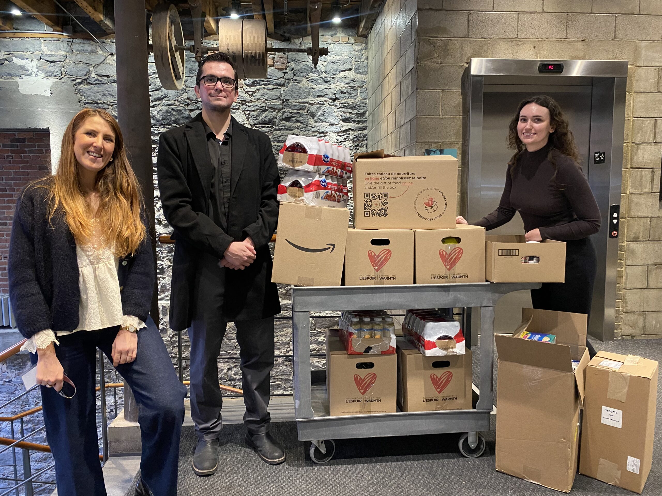 During the months of November and December, we hosted a food drive at our Montreal office, where employees could bring non-perishable goods and hygiene products. Thanks to their generosity, we were able to donate over 10 boxes, each capable of feeding 4 people, to the food bank.