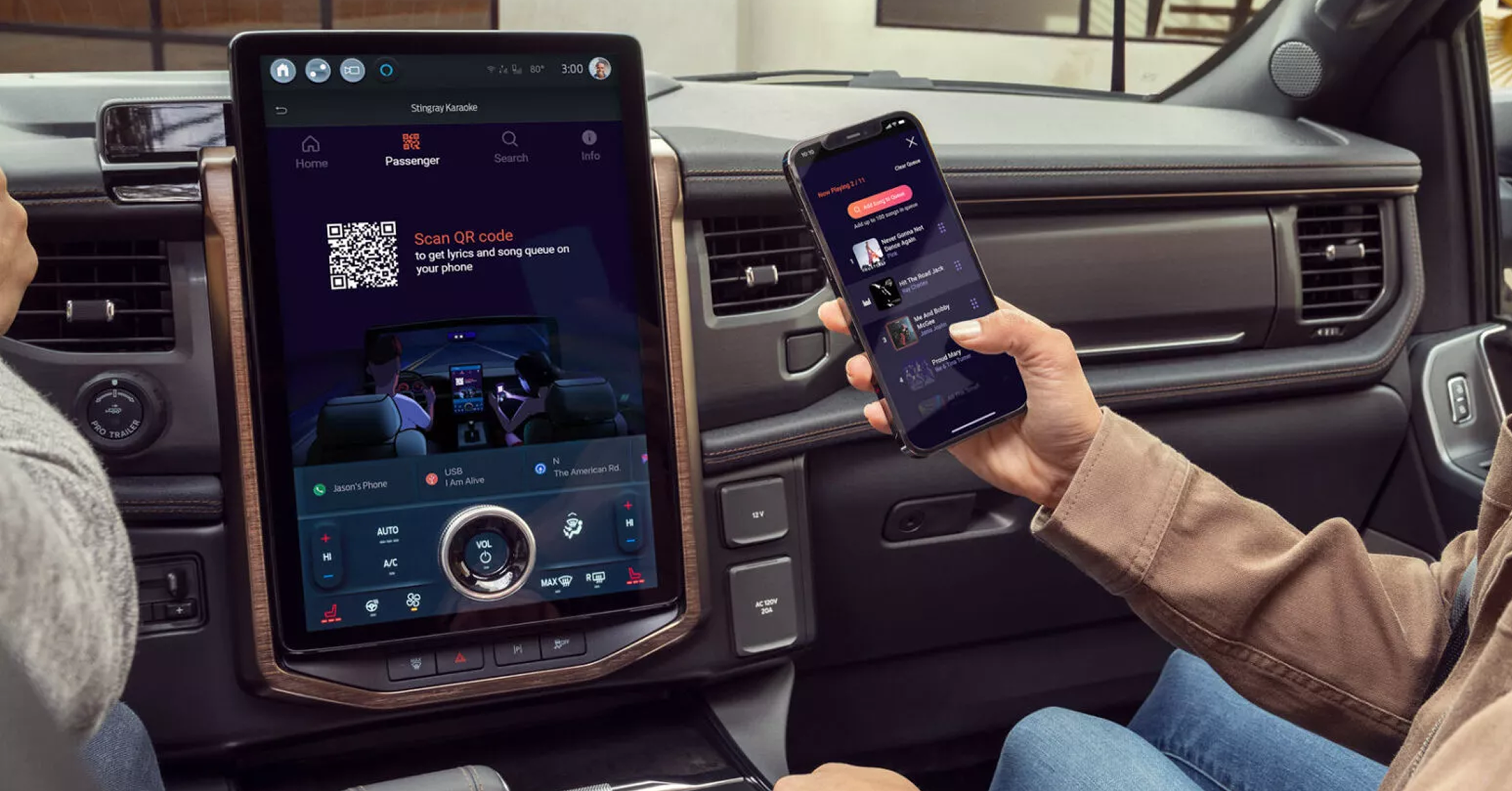 Stingray Karaoke ensures that when the vehicle is in drive, the scrolling lyrics on screen can be viewed on a companion app controlled by passengers.